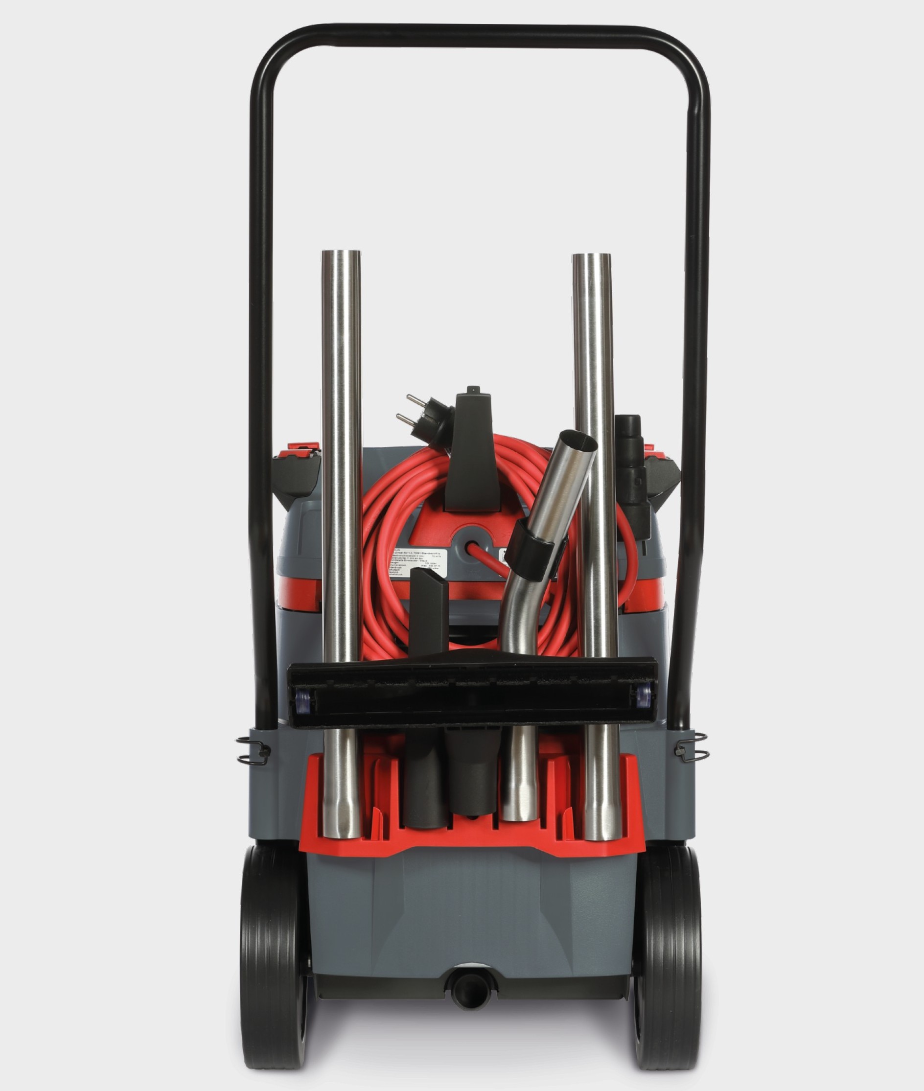 Leistungsaufnahme (max.): 1200 Watt Volumenstrom: (max.) am Motorkopf / Schlauchende gemessen: 70 / 40 l/s Unterdruck: (max.) am Motorkopf / Schlauchende gemessen: 265 / 230 mbar Behältervolumen (max.) Brutto-Staub-Wasser: 35/25/22 l Kunststoff Abmessungen: 66 x 40 x 92 cm Gewicht: 16,8 kg Netzleitungslänge: 8 (Gummi, H07RN-F), rot Aktionsradius: 13,0 Lieferumfang: Filterbeutel: 3 Stück Spezial PE-Entleerbeutel (Asbest). Nachkauf (425757) (5-er Pack) Zubehör: Smartfix; 2 Klettbänder; Fahrbügel; 1x Saugschlauch AS, m.rt. NLR Ø 35 mm x 5 m (447162); 2x Saugrohr ES 35-50, Edelstahl, Ø 35 mm x 50 cm (424842); 1x Griffrohr Edelstahl, abgestuft (421445); 1x Bodendüse 30 (440941); 1x Anschlussmuffe, abgestuft (425719); 1x Fugendüse 22 cm (417011)